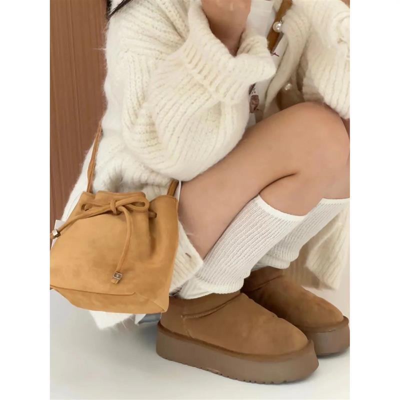Brown Suede Shoulder Bag Simplicity Retro