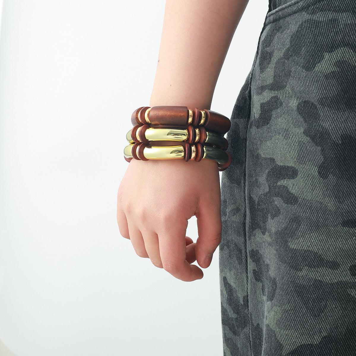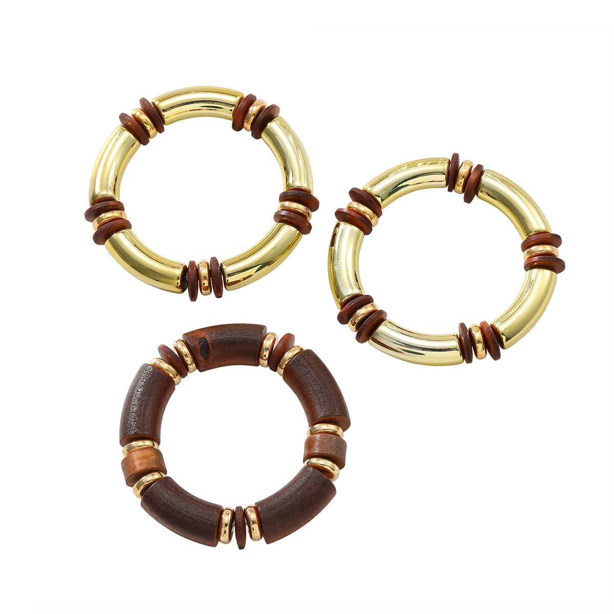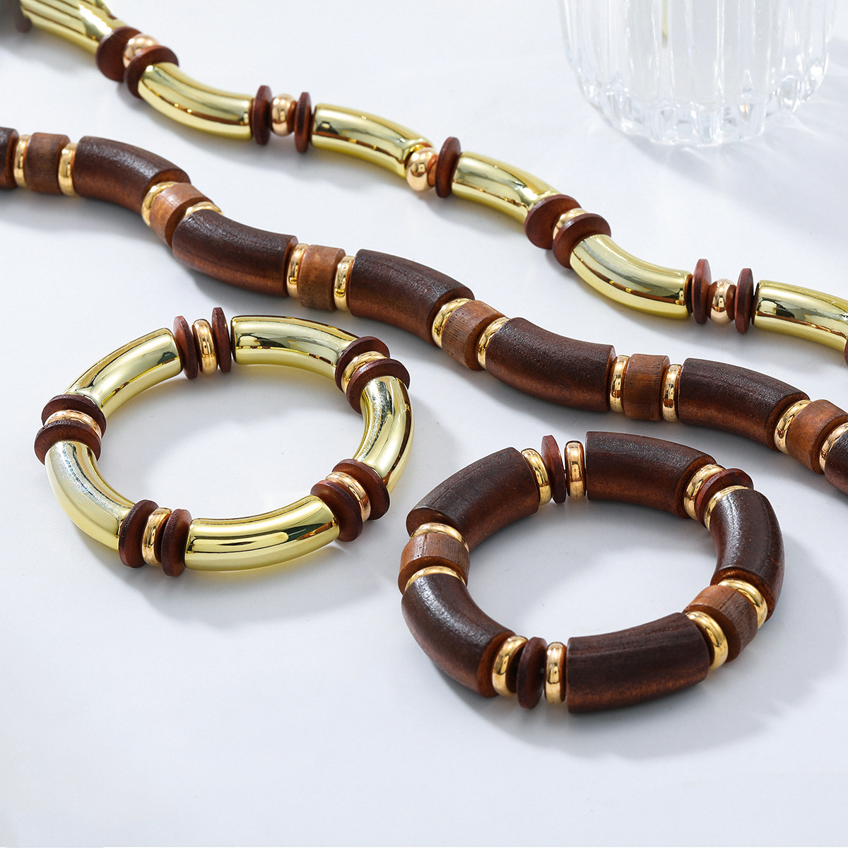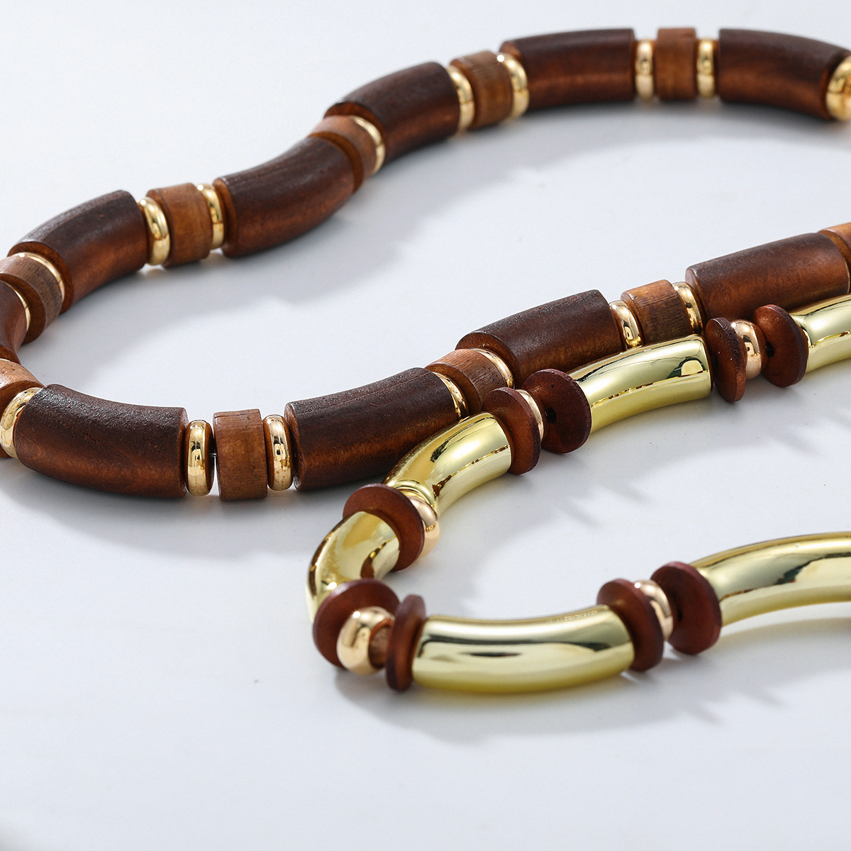 European And American Exaggerated Famous Brand Multi-layer Wooden Necklace, Bracelet Set