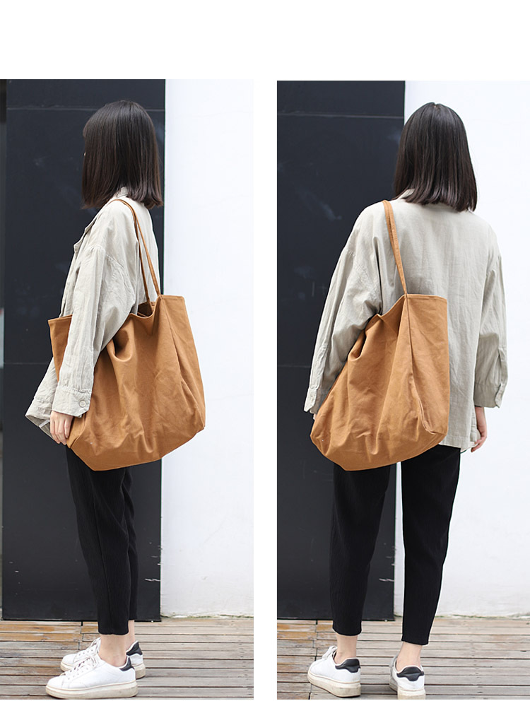 Mori Artistic Canvas Shoulder Bag Casual Retro Solid Color Tote