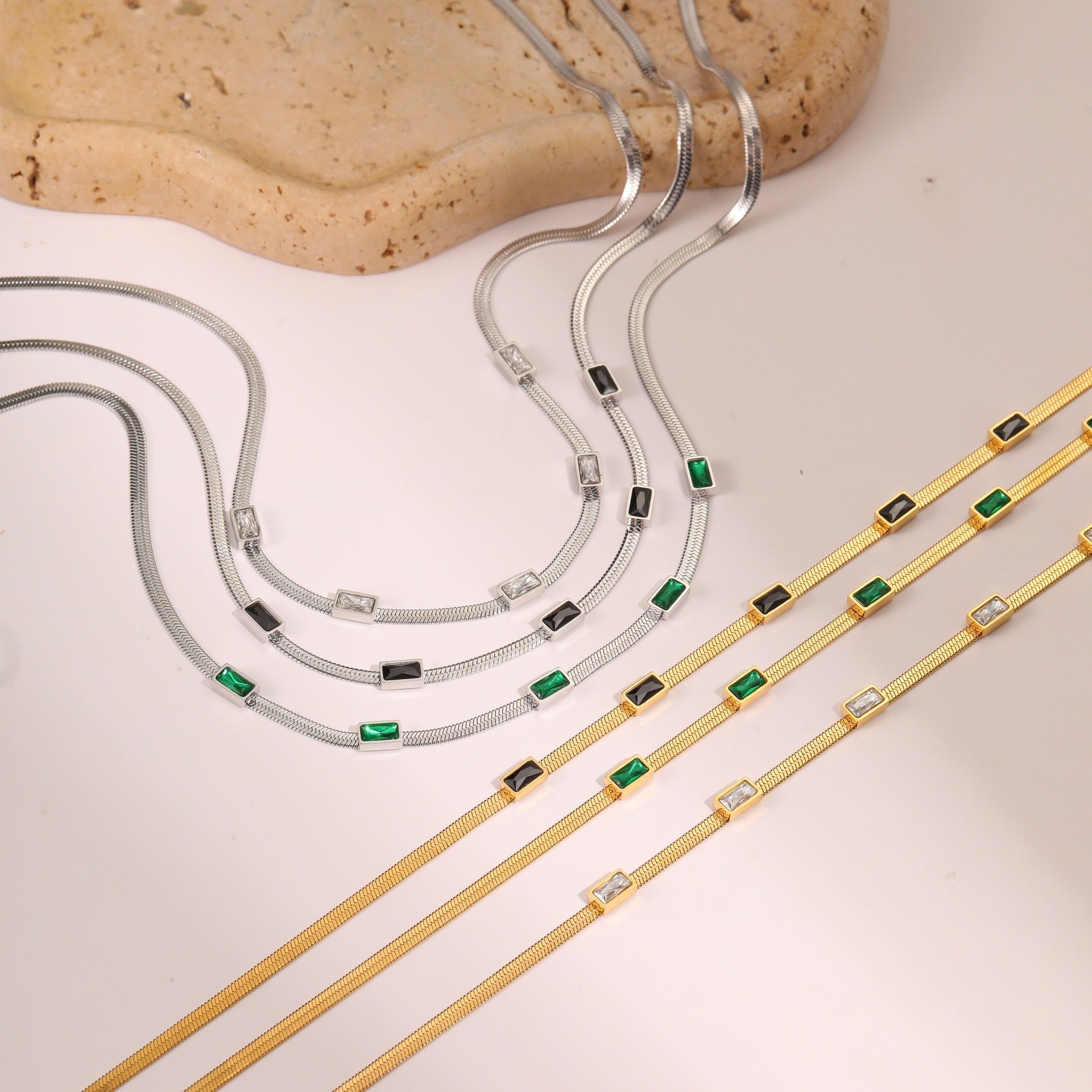 RETRO Geometric Square Zircon Necklace Stainless Steel Necklace Chain Like Flat Snake