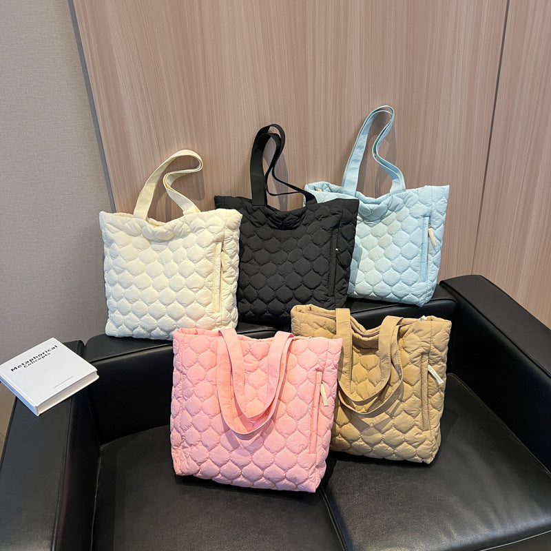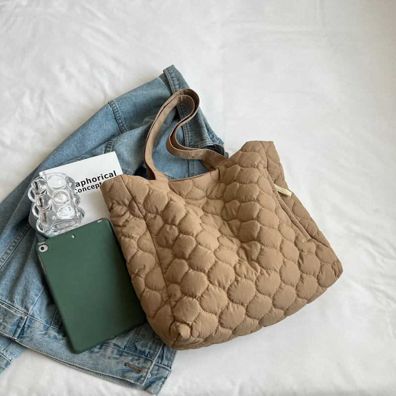 Rhombus Cotton-padded Coat Shoulder Tote Bag